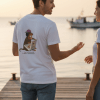 - Y serigrafía con diseño de animales graciosos realizando actividades humanas en la espalda