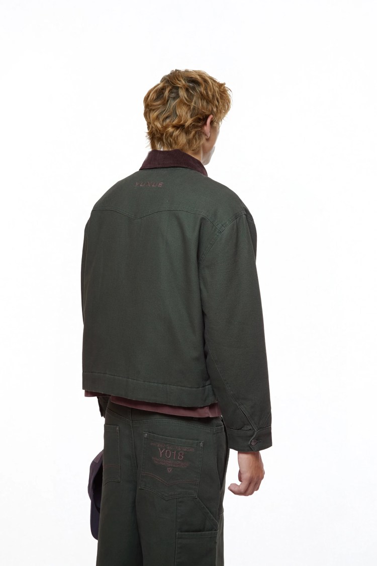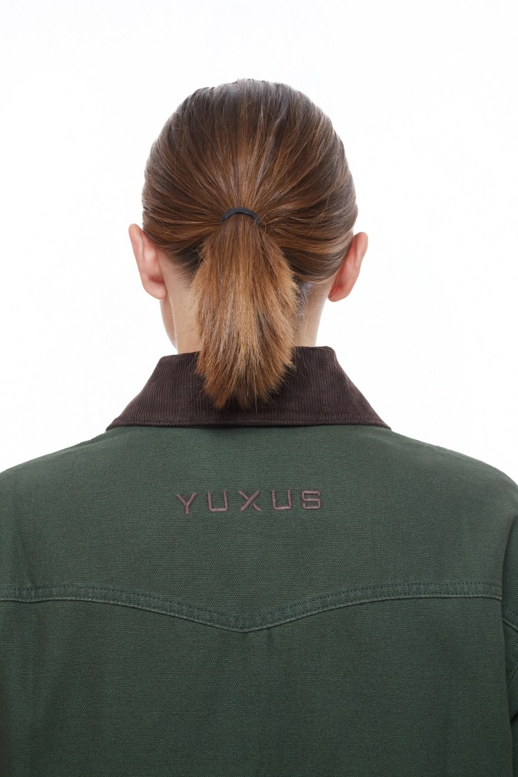 Confeccionada en 100% algodón de alta calidad, ofrece resistencia, suavidad y confort. Su diseño incorpora tres bolsillos frontales funcionales, cuello de pana en contraste y el logo bordado en el pecho y en la espalda, reafirmando la identidad minimalista y distintiva de Yuxus.