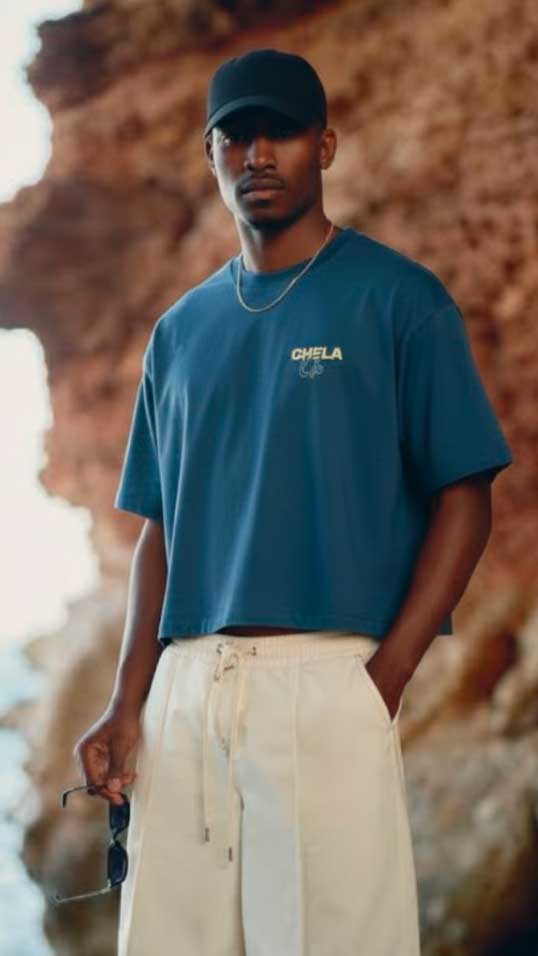 Fabricada con algodón orgánico certificado, esta pieza de Chela Clo combina sostenibilidad y estilo street con alma isleña.