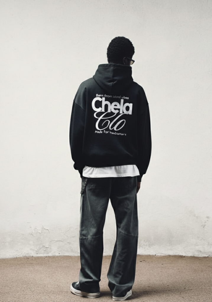 Desde Canarias para el mundo. La sudadera Born From Black de Chela Clo es una declaración de intenciones. Diseñada para quienes entienden que ser trendsetter no depende de dónde naces, sino de cómo vibra tu esencia. Con corte cropped, fit relajado y 400 GSM de algodón orgánico de tacto seco (dry handfeel), es una prenda pensada para marcar estilo y transmitir mensaje.