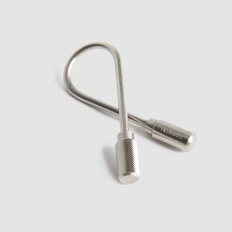 El llavero Craighill Closed Helix keyring stainless steel esta hecho con alambre de acero inoxidable de 0,5 mm de espesor con forma de hélice finalizado con dos tapas torneadas, una fija y otra estriada desatornillable, para agregar o quitar llaves.