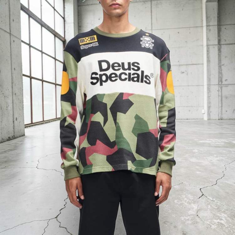 La Colt Ryder Moto Jersey Camo es ideal para quienes buscan una prenda con inspiración motocross, estética racing y el espíritu creativo de Deus Ex Machina.