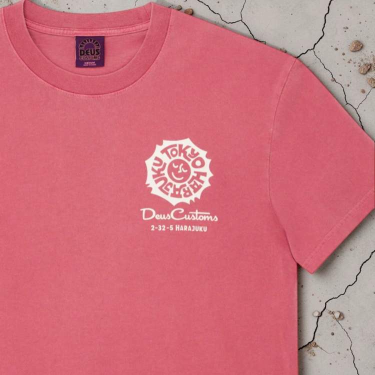 El diseño Tokyo Address incluye el clásico gráfico de Deus con la dirección del espacio creativo que la marca tiene en Tokio. Este tipo de camisetas se han convertido en una firma dentro del universo Deus, ya que representan las ciudades que forman parte de su comunidad global.