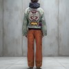 En la parte trasera, destaca un gran parche bordado que aporta carácter y actitud. Su interior forrado con tejido de lana a rayas ofrece abrigo y contraste visual, convirtiéndola en una prenda clave para los días frescos.