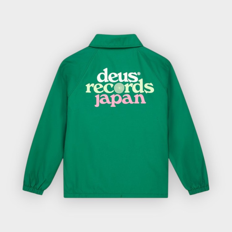Incluye un cierre frontal con botones a presión personalizados, dos bolsillos laterales tipo ojal, bajo ajustable con cordón y gráficos impresos tanto en la parte delantera como trasera. Inspirada en los clásicos del estilo “coach jacket” pero reinterpretada con el carácter inconfundible de Deus.