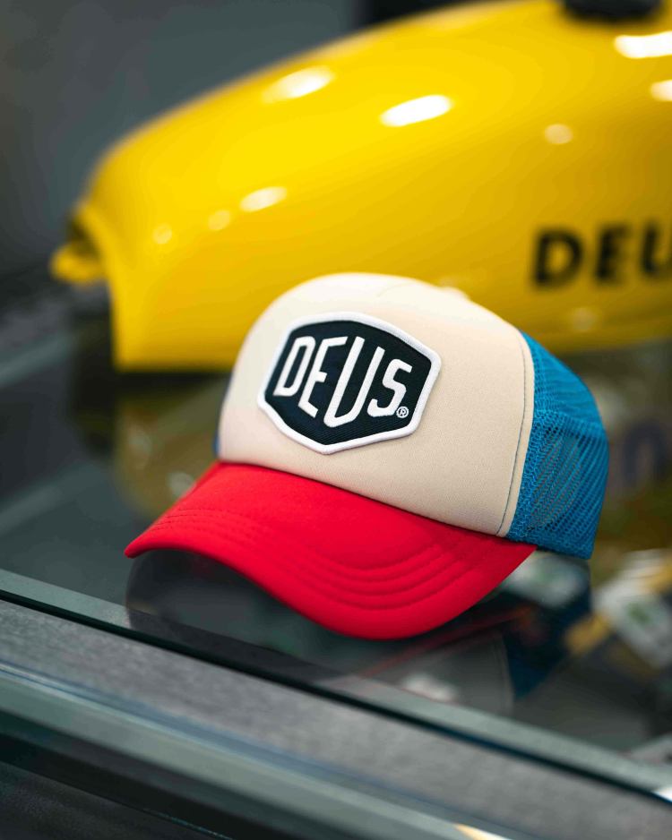 ¡Has encontrado la gorra Deus Ex Machina Baylands trucker blue red que estabas buscando! Con visera tipo trucker fiel al estilo único e icónico de Deus Ex Machina. Con un diseño tricolor en blanco roto, rojo y paneles traseros en malla en color azulina. Con su parche bordado del logo la marca en el panel delantero con su estilo típico de la mítica marca y con otro bordado de la tipografía de la marca con hilo en contraste en los paneles traseros sobre el cierre ajustable. Todas sus prendas y accesorios están diseñadas y probadas en Deus House of Simple Pleasures, Camperdown, Sydney. Si eres amante de las motos y/o el surf esta es tu marca.
