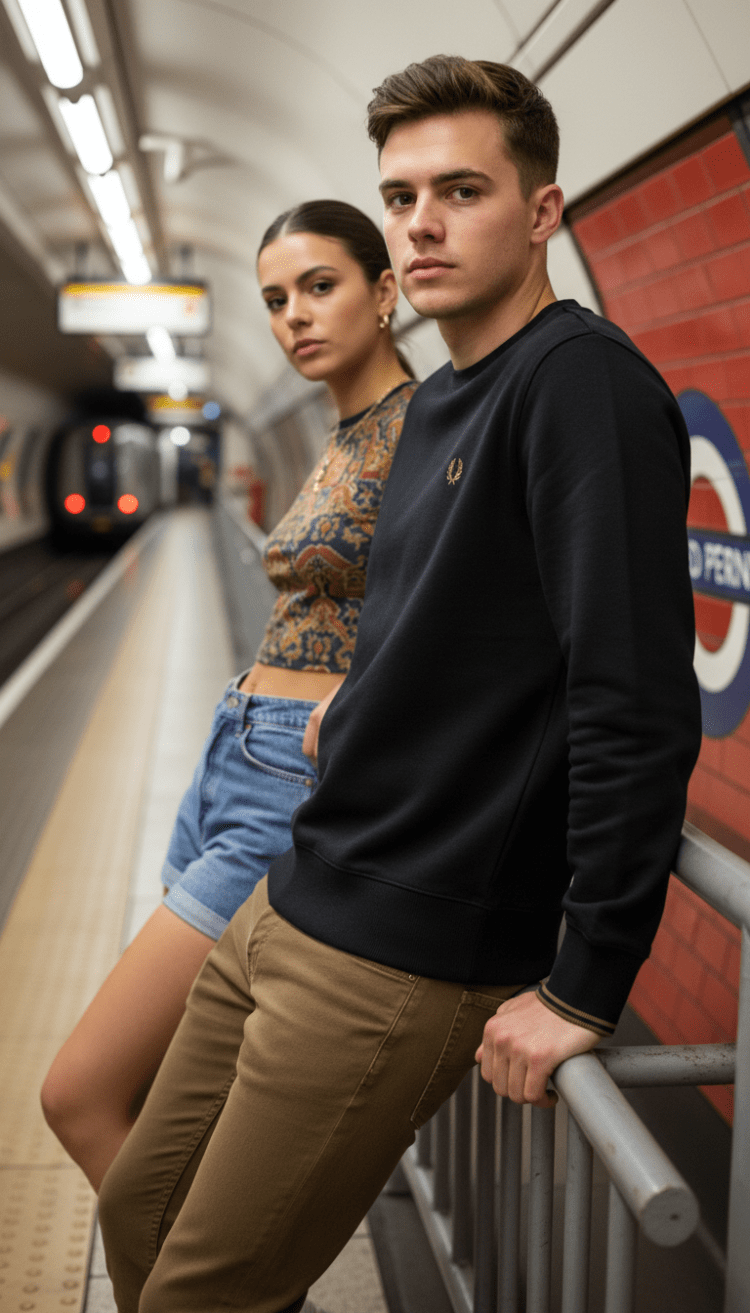 Con un corte recto y acabados cuidados, presenta cuello, puños y bajo de canalé para un ajuste perfecto. El toque característico de la marca aparece en los puños con el icónico ribete de dos franjas, un detalle gráfico que ha acompañado a Fred Perry desde sus orígenes. La prenda se completa con la corona de laurel bordada en contraste en el pecho, símbolo de su herencia británica.