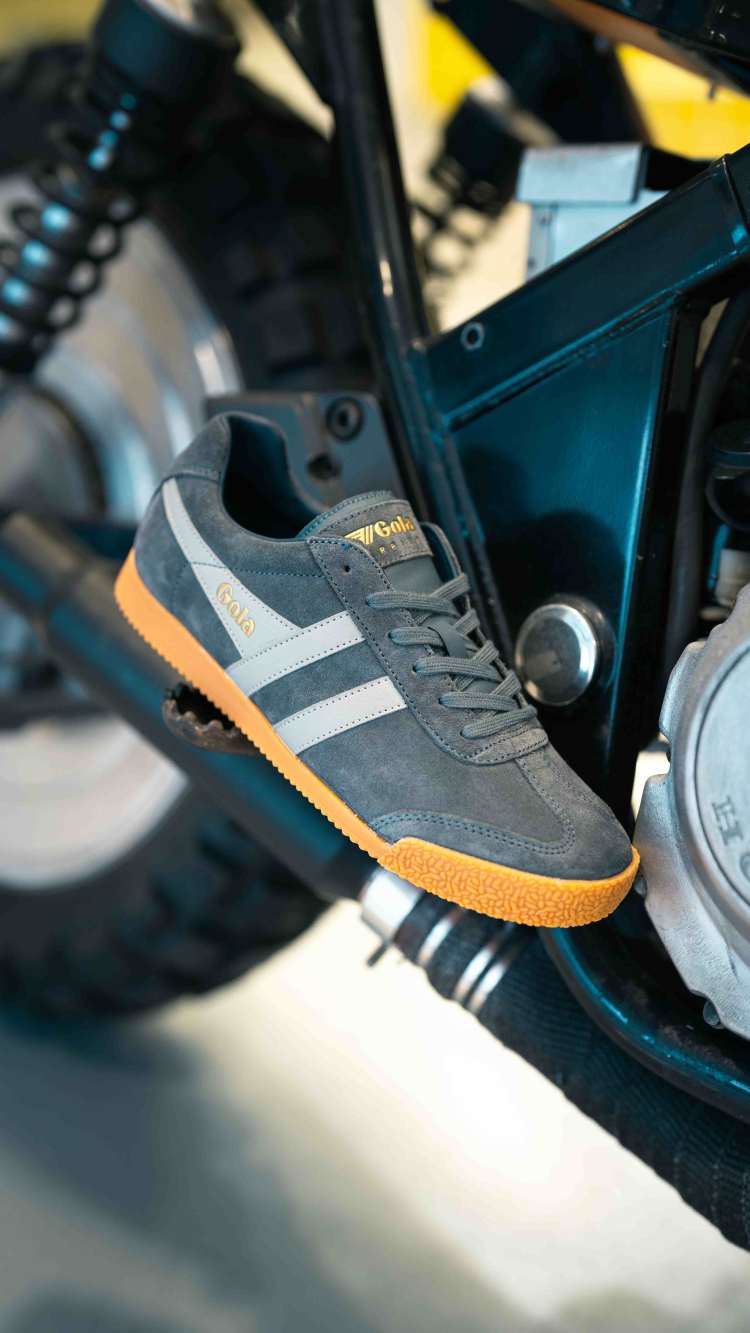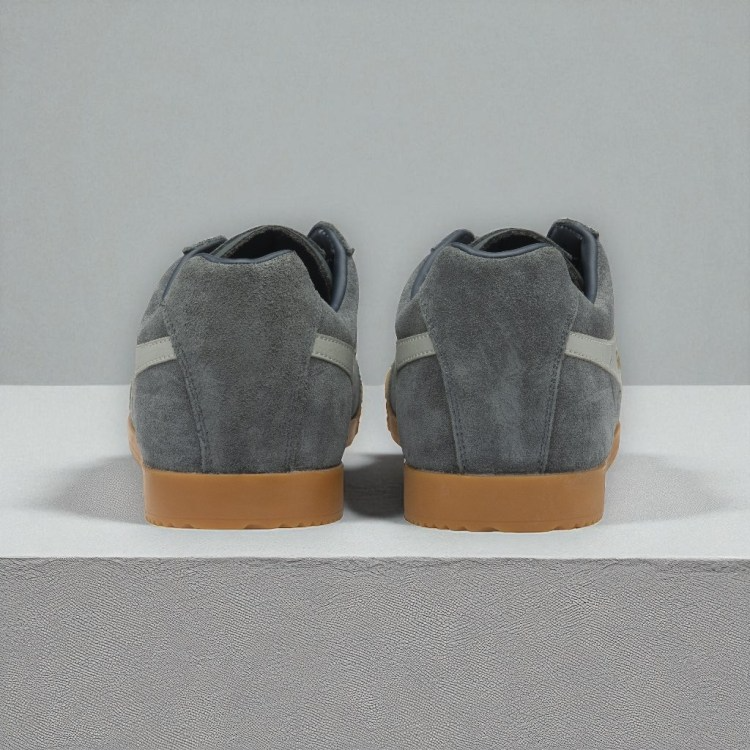 Reinventa tu día a día con las Harrier trainers suede dark brown Grey Storm Navy de Gola, un clásico deportivo reinterpretado para la calle.