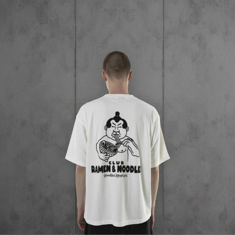La Noodles White Tee de Goodies Sportive es una camiseta blanca con esencia callejera y estética gráfica. Su diseño incorpora un print distintivo en el pecho izquierdo y en la espalda, evocando el universo cultural y creativo de la marca.