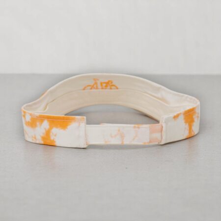 Viseras Tie Dye en naranja y negro, ideales tanto para deporte como para playa o fiesta. Creadas con procesos de desteñido únicos y logo a tono.