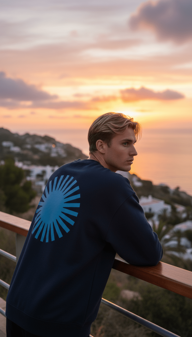 Sudadera navy Sol espalda azul Leon: estilo retro y moda sostenible