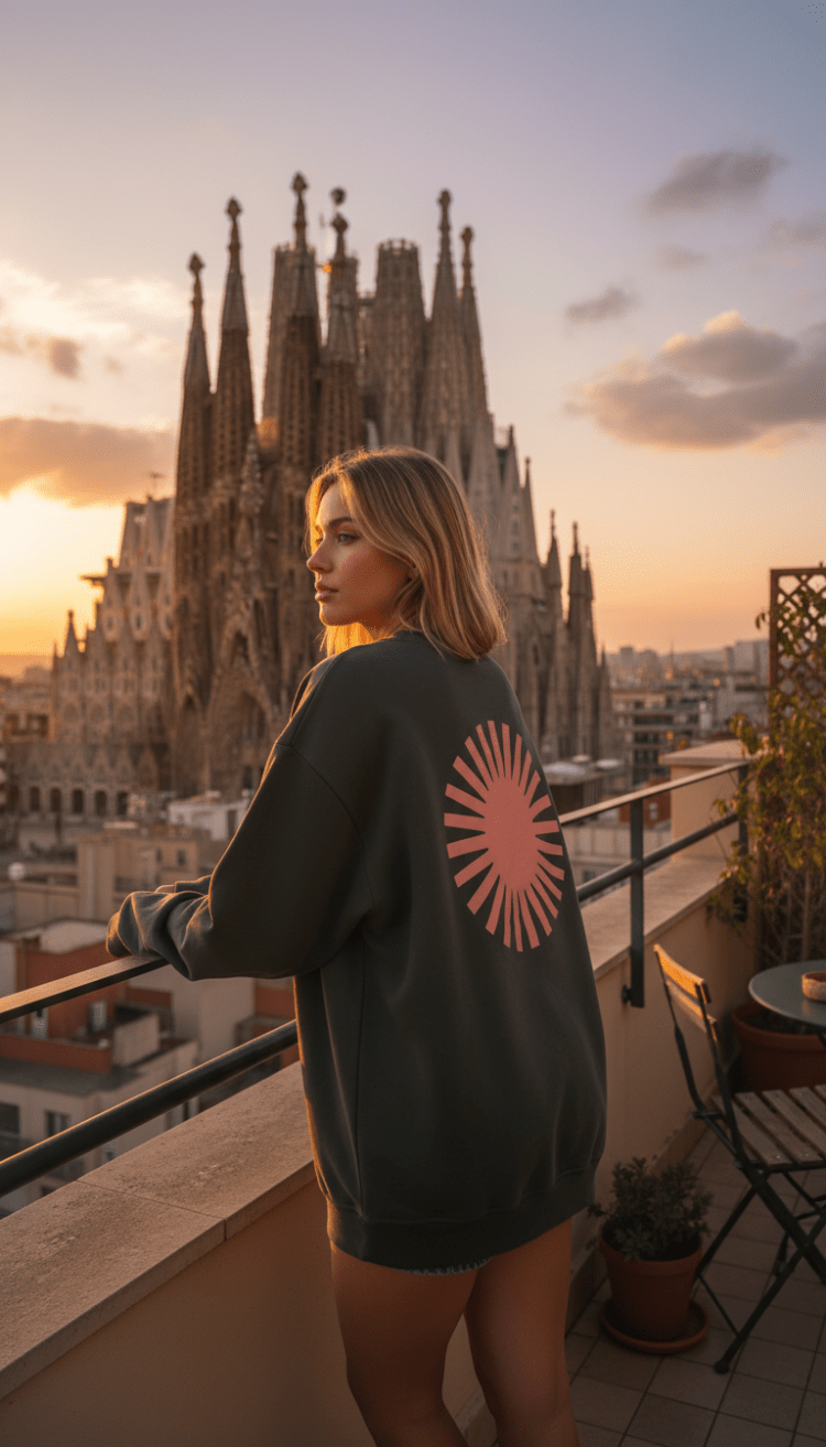 Sudadera Sol espalda coral Leon: estilo retro y moda sostenible