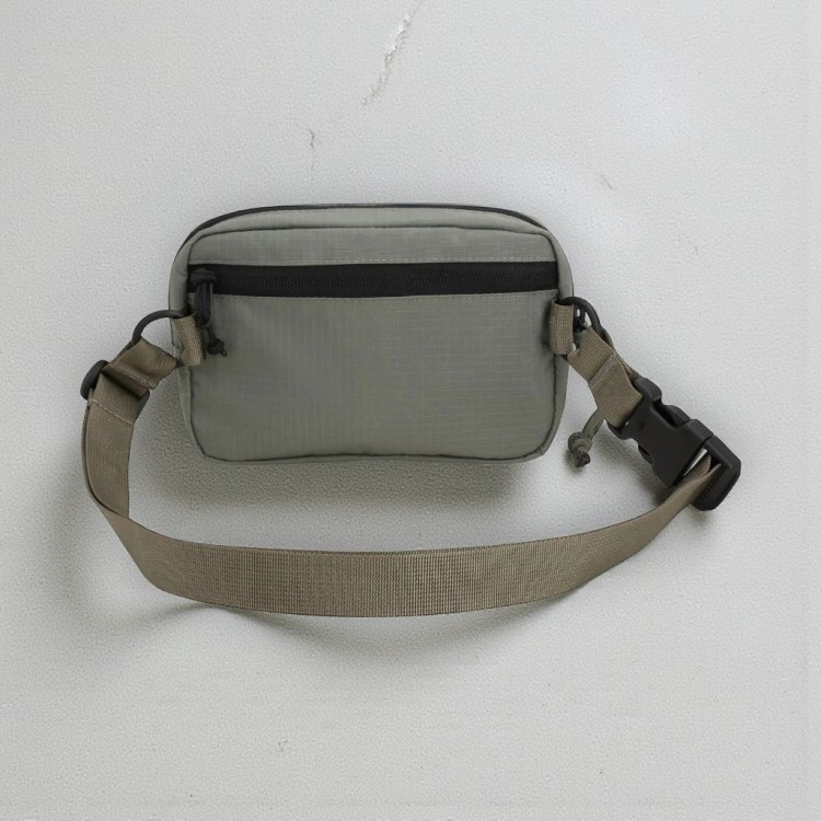 Fabricada 100% con nylon ripstop reciclado, esta riñonera de 1,25 L se puede llevar cruzada o en la cintura, gracias a su correa ajustable. Cuenta con un compartimento principal con cremallera, bolsillo trasero con acceso rápido y un gancho interior para llaves que te ayuda a mantener todo en orden.