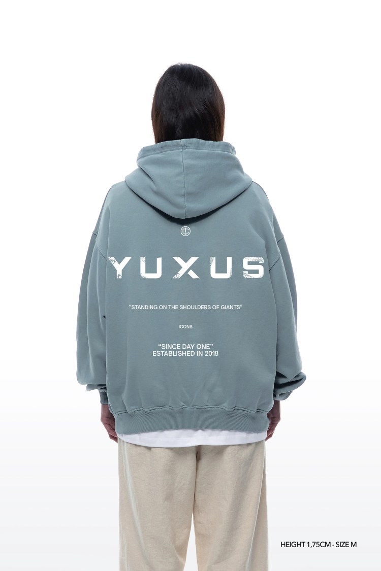 Has dado con la sudadera con capucha Yuxus aden Icons, en color verde grisaceo lavado perfecta para cualquier ocasión. Una marca española de ropa con mucha personalidad y estilo Streetwear. Fabricada en Portugal, diseñada en Londres y creada en Madrid para su Cápsula: “Icons”. Corte estilo oversized con efecto lavado y hombro caído. Ah, son Unisex!